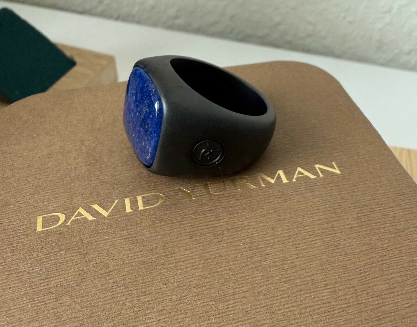 - David Yurman Black Titanium Men's Lapis Signet Ring Size 11