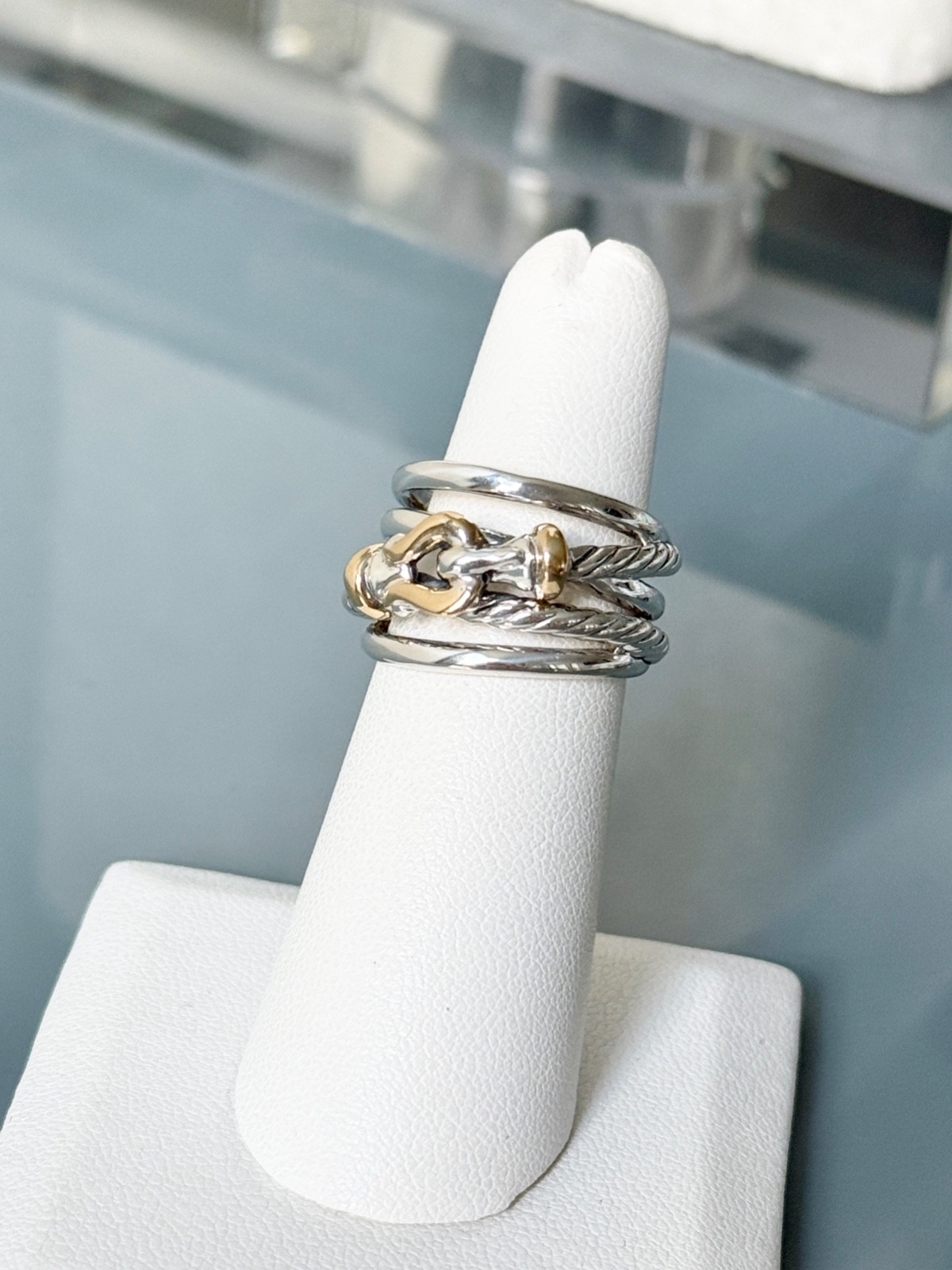 David Yurman .925 Sterling Silver 18K/750 Yellow Gold Buckle Crossover Ring