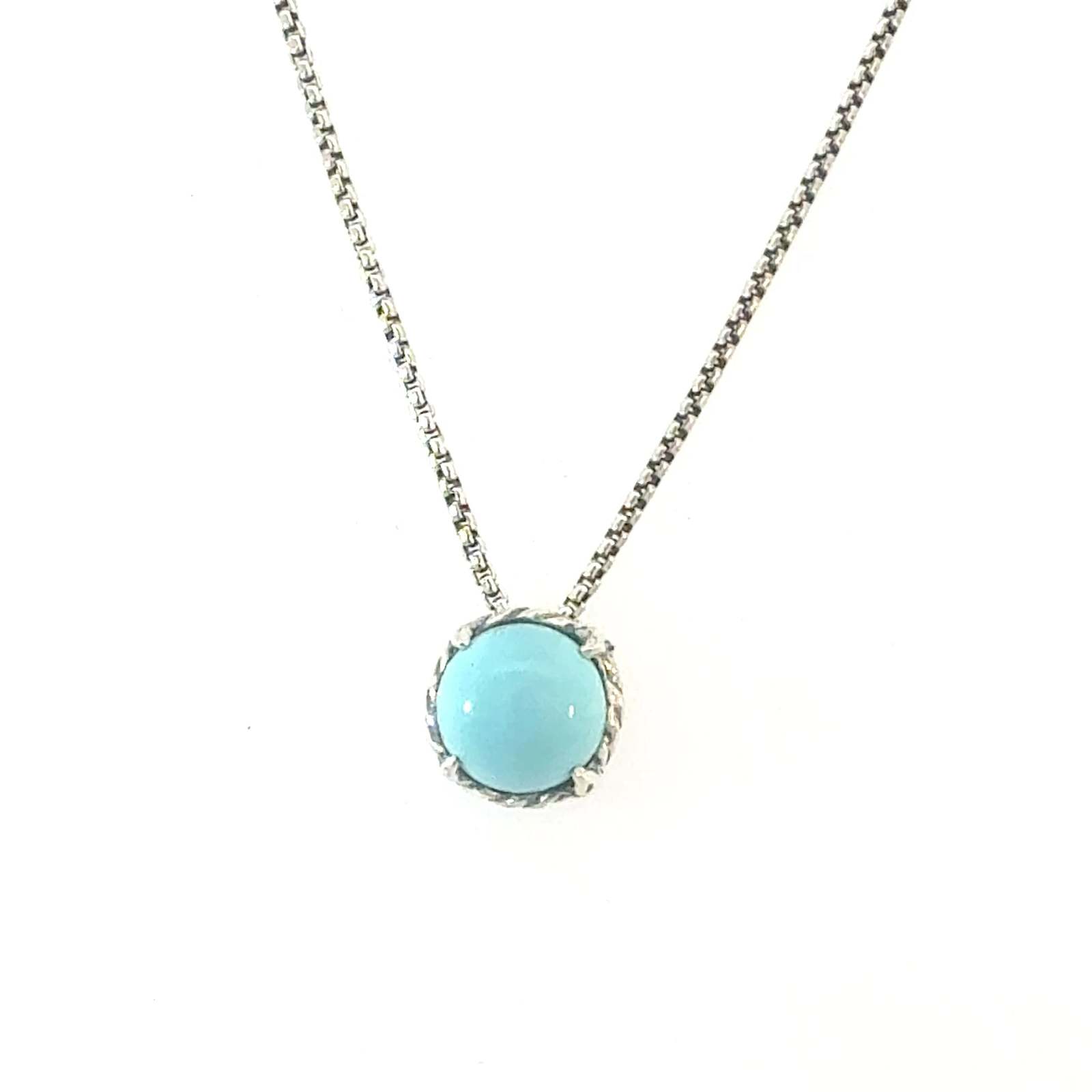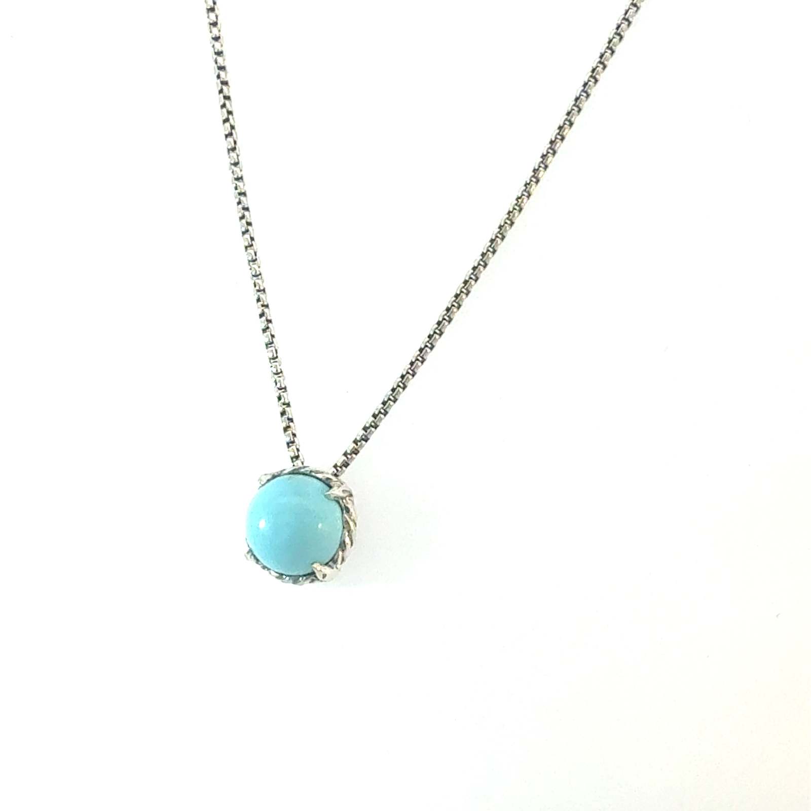 - David Yurman Turquoise Pendant Necklace 17" Sterling Silver Estate DY689