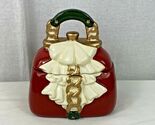 David's Cookies Mini Purse Cookie Jar Red, White, Green, Gold 6 1/2" Tall !!!!!!