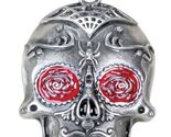 - Day of the Dead Tattoo Skull Charm Pendant, Red and Silver Colored
