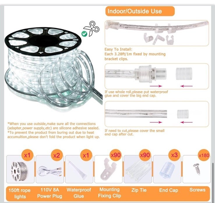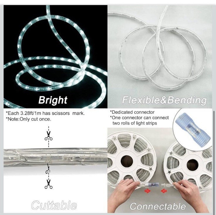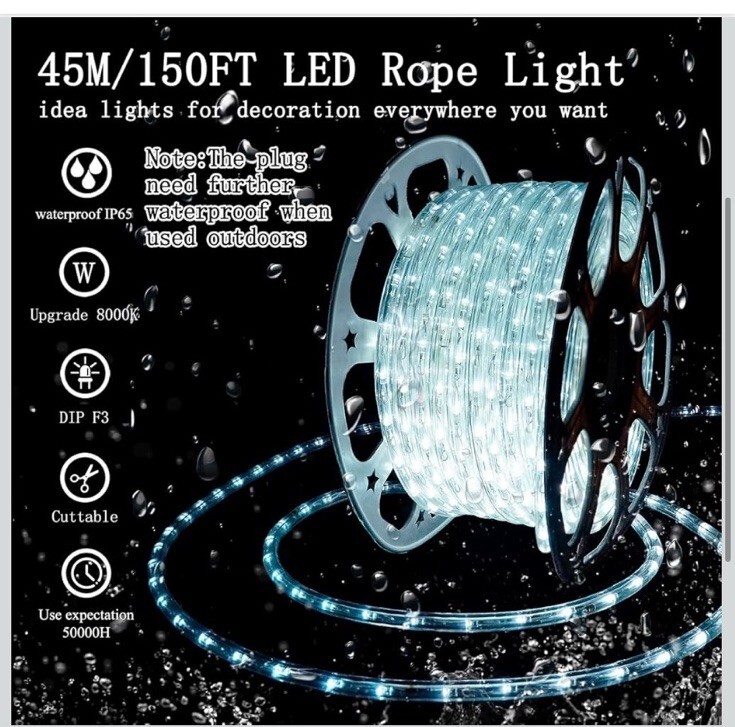 - Daylight White Thick LED Rope Light Accent Indoor Outdoor Dimmable 150 Feet