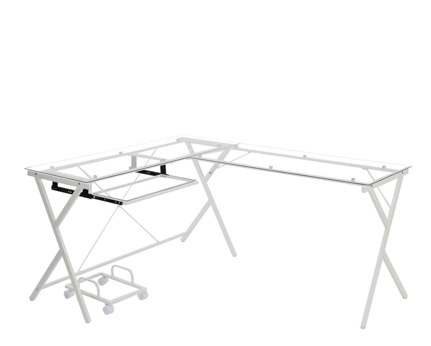 - Dazenus Computer Desk, Clear Glass Top & White Finish