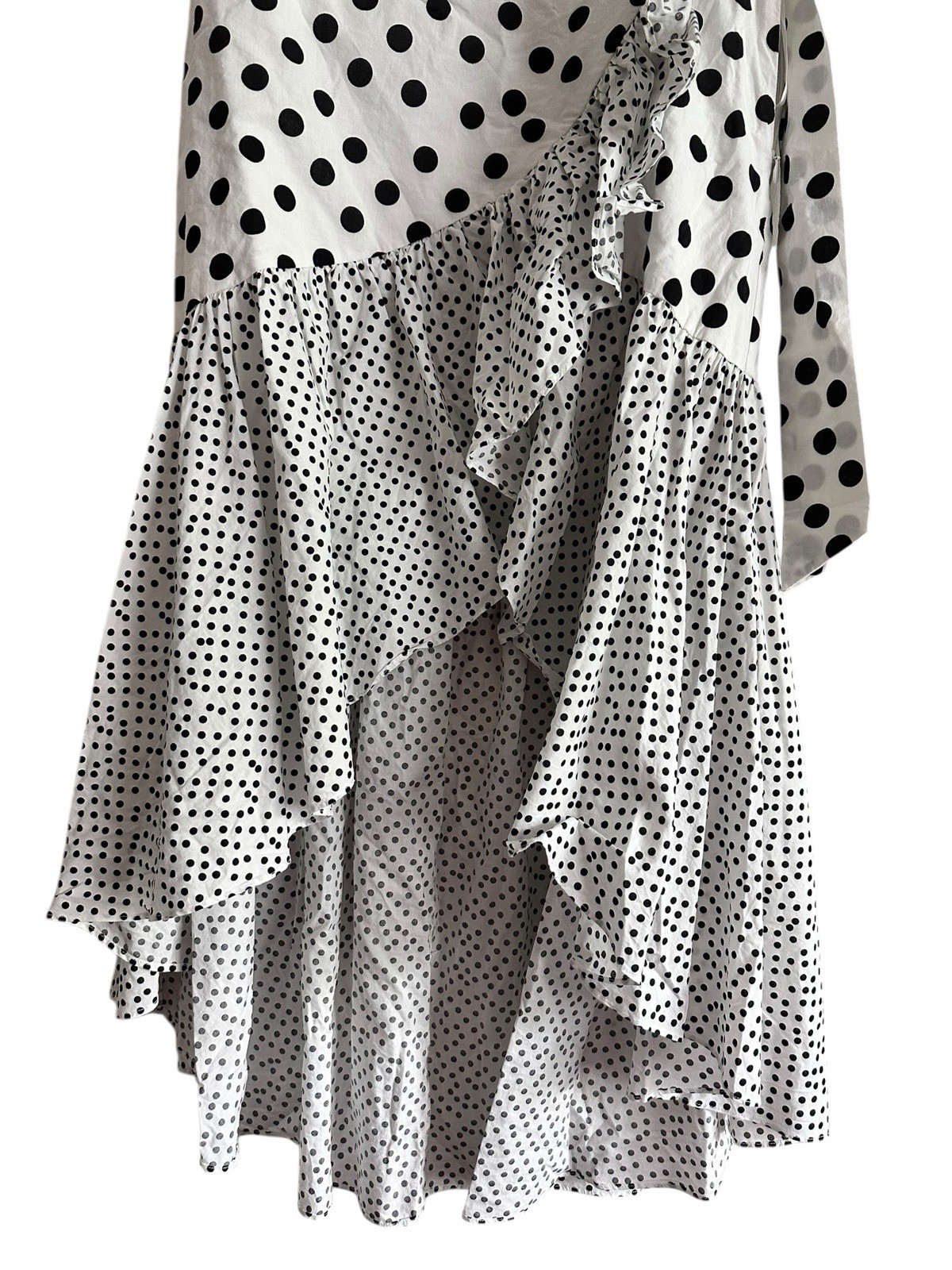 - De La Vali Cotton Skirt High Low Ruffle Polka Dot 10UK or About 6US Black White