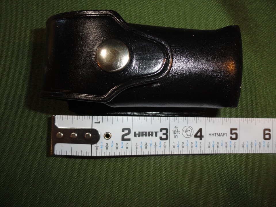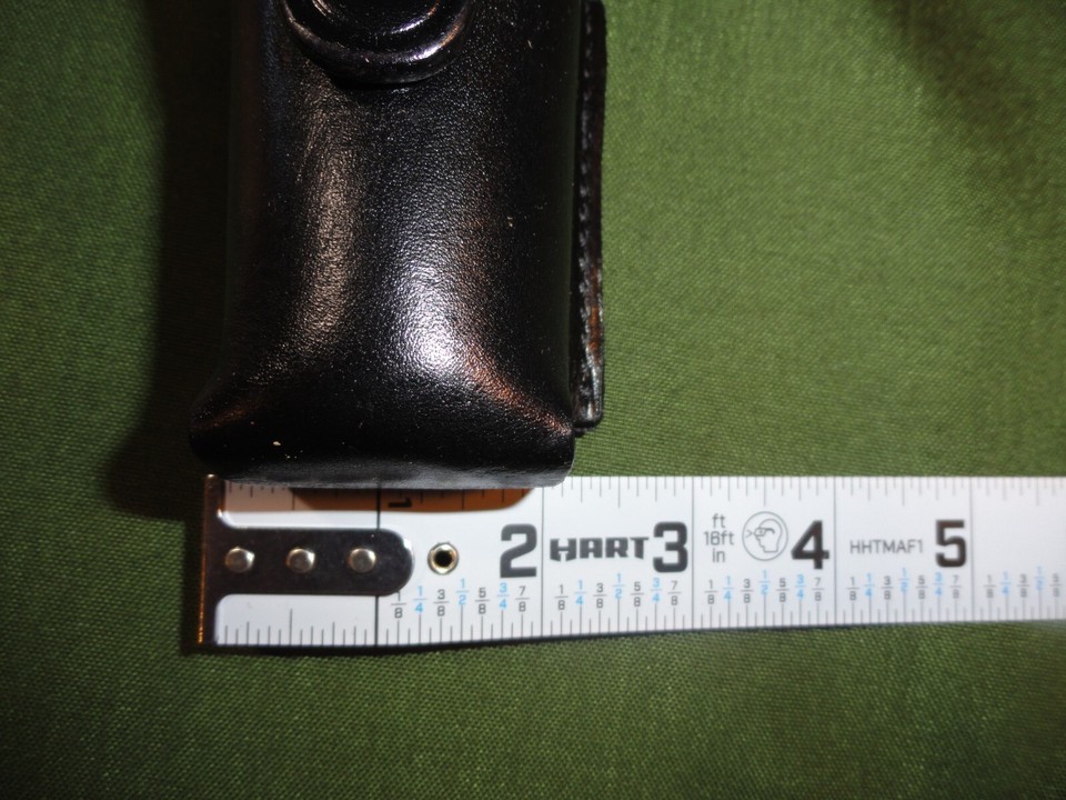 The U40 is made of full grain leather. 2 1/4" belt slots on back. . black with a plain finish. accommodates canisters up to 4 3/4" high, 1 3/4" wide