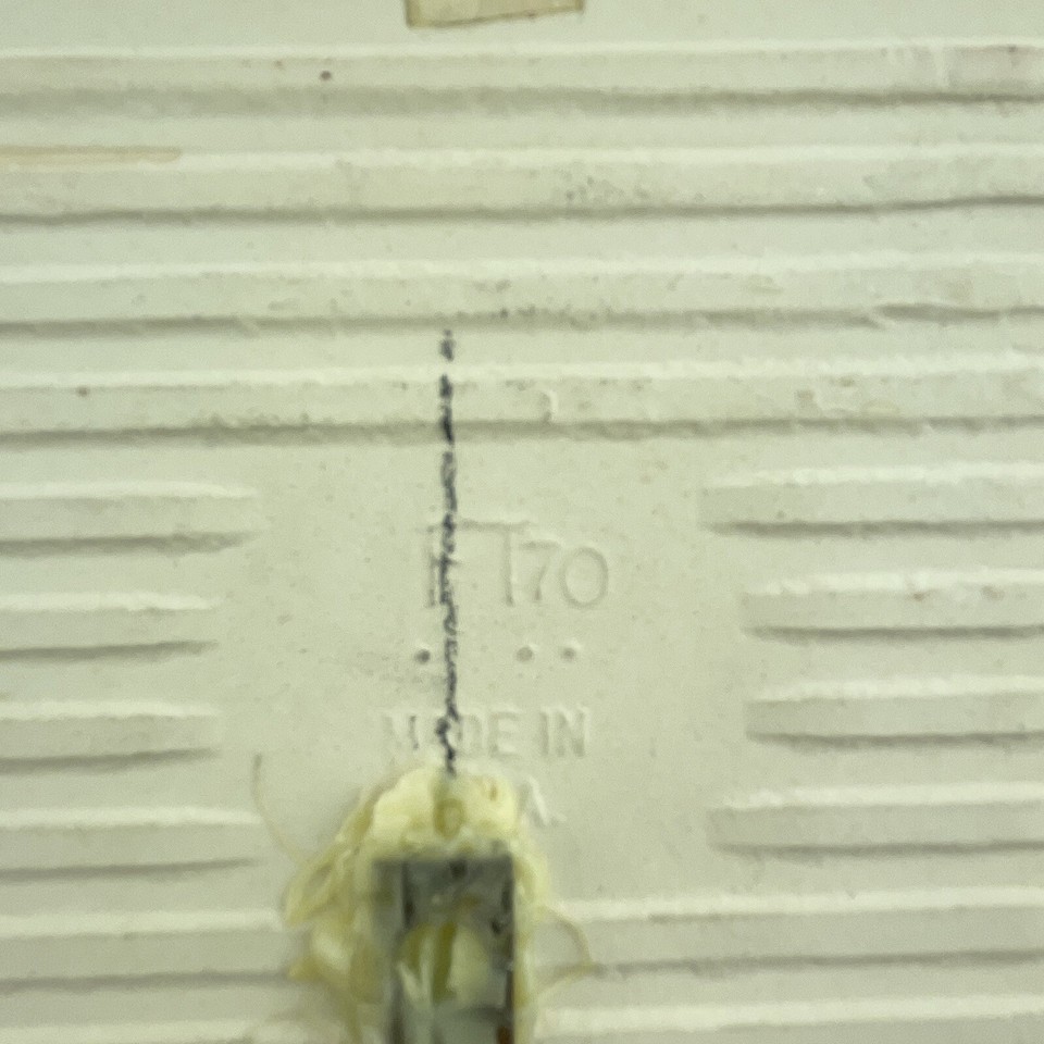 Good condition. Seems to have an ombre wash lighter cream wash at top and darker peach color toward bottom or else its discolored. Gnome graphic in center is bright and clear. See photos.