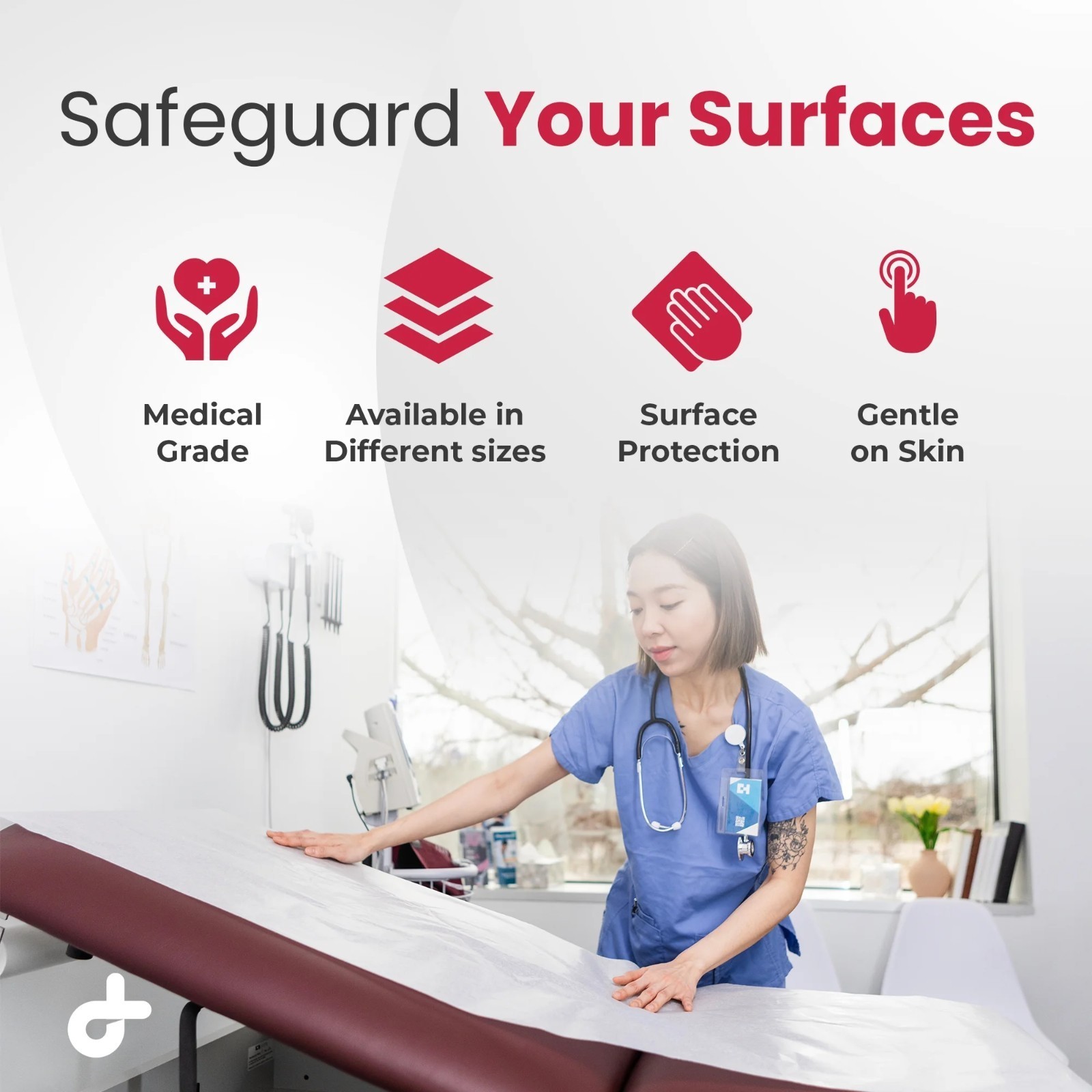 Protective Hygienic Layer: Crafted from premium smooth paper, this medical exam paper provides reliable protection against moisture, dirt, and spills. It helps keep medical furniture clean and extends the life of tables, chairs, and equipment.