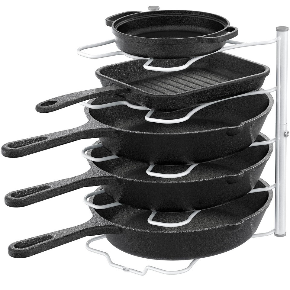 - Deco Brothers Pan Organizer Rack for Kitchen Cabinet and Counter White