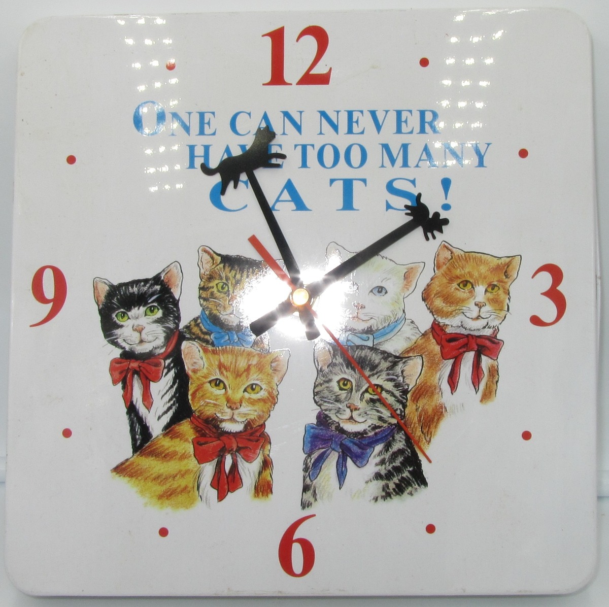 - DECORATIVE BATTERY OPERATED NOVELTY MANTEL DESK SHELF CLOCK CATS NEVER TOO MANY