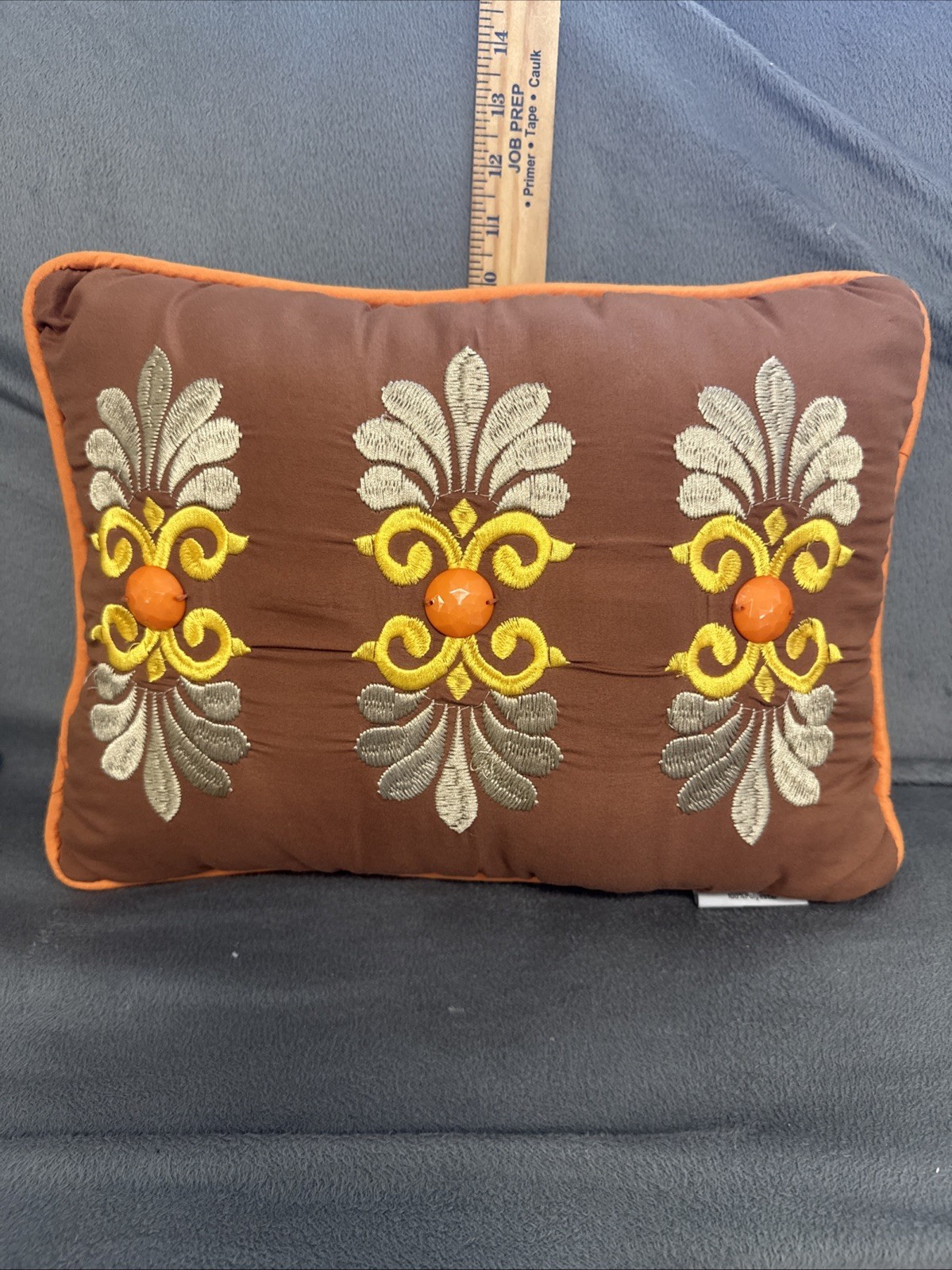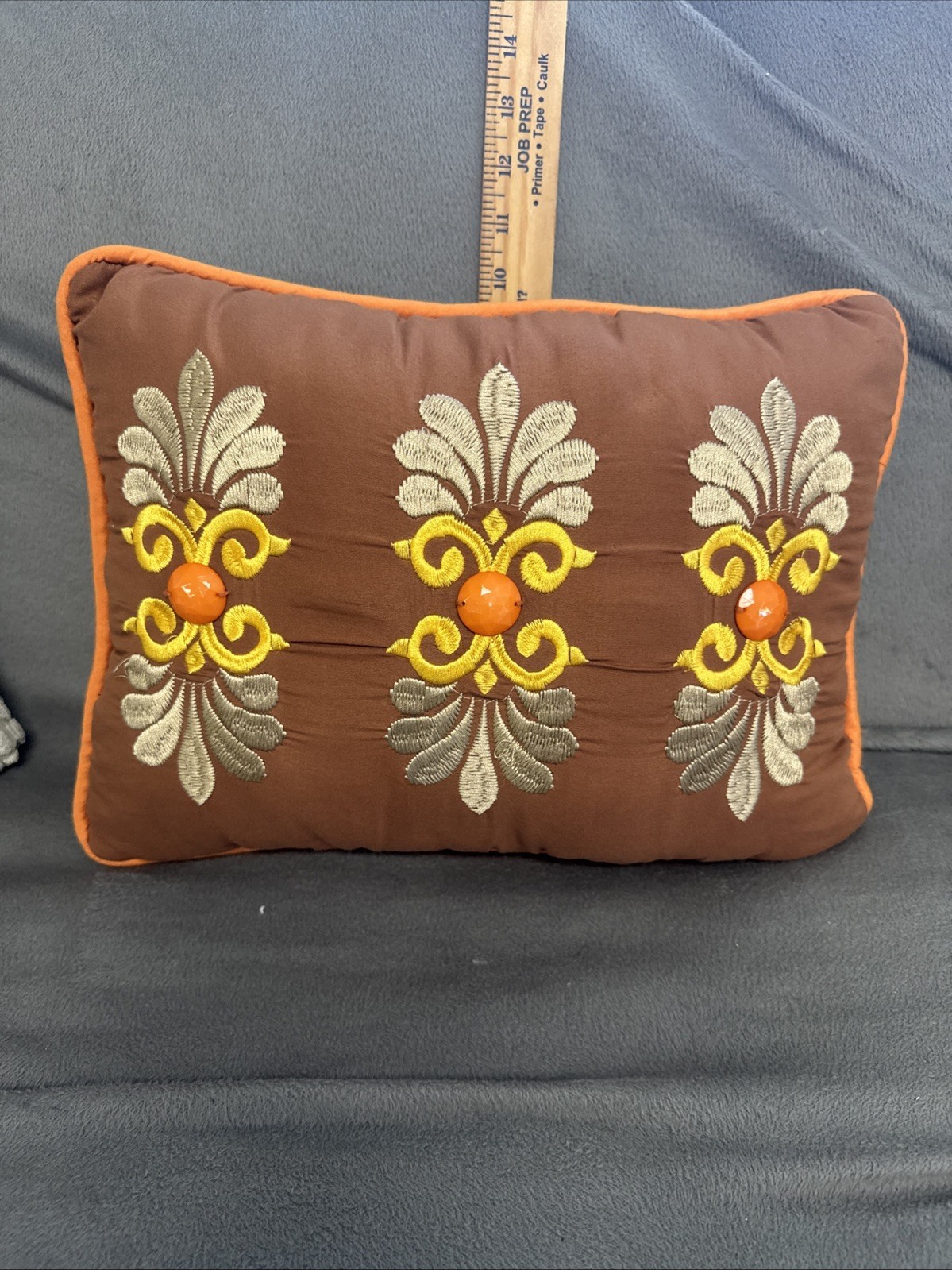- Decorative Embroidered Throw Pillow 17” White Silver Hello Orange Retro Look
