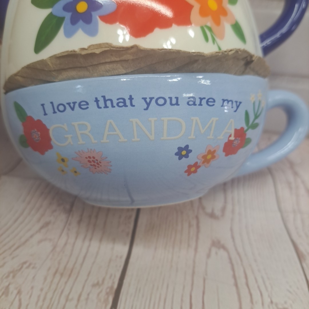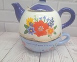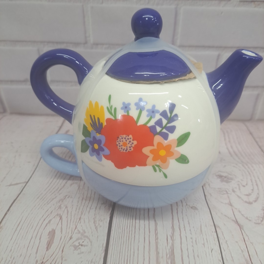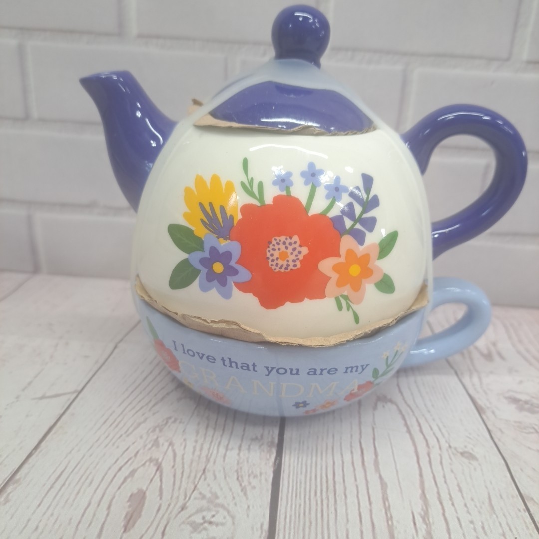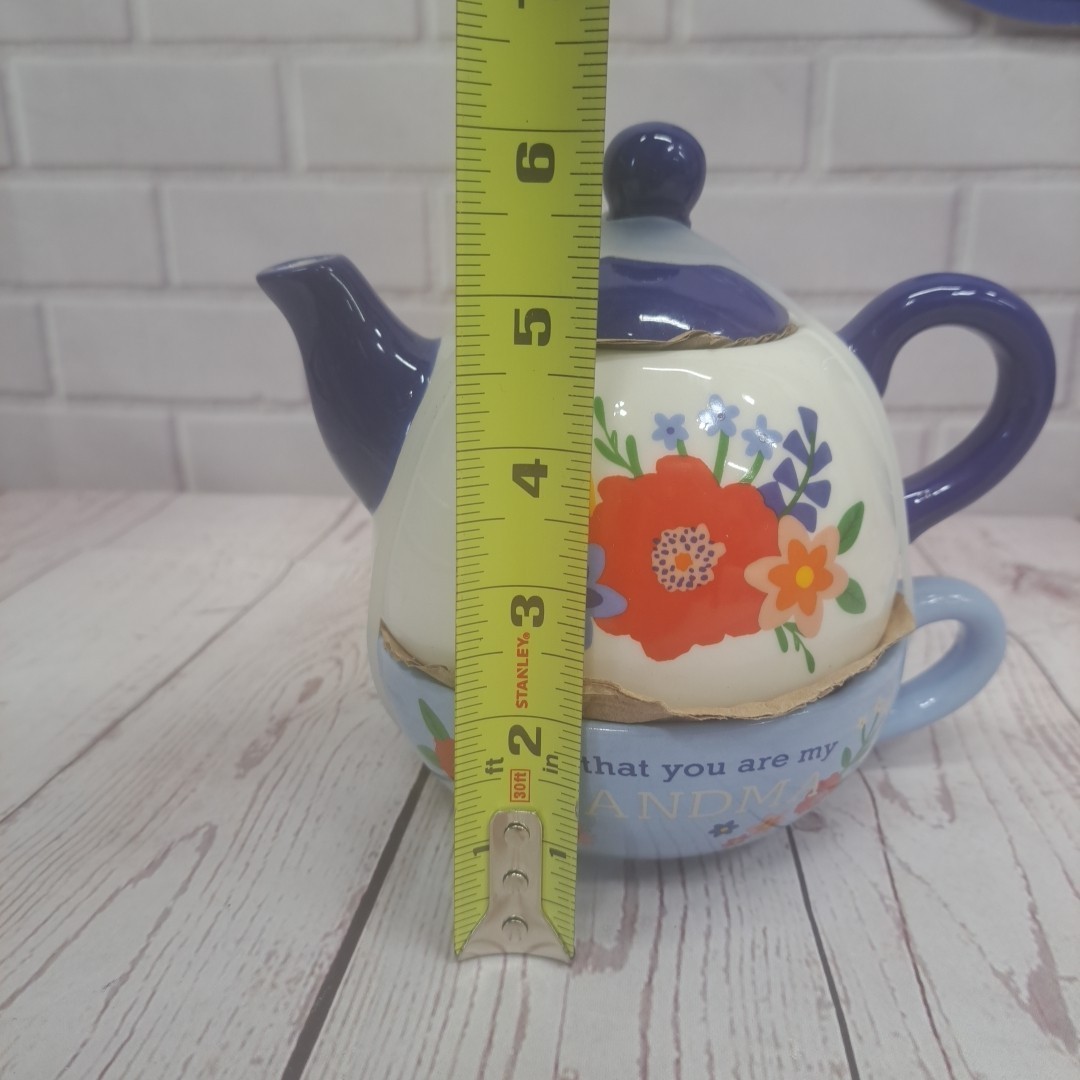- Decorative Teapot And Cup Combo Painted Flowers, Grandma Gift Set New