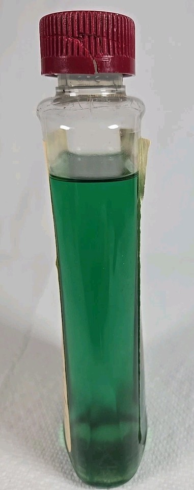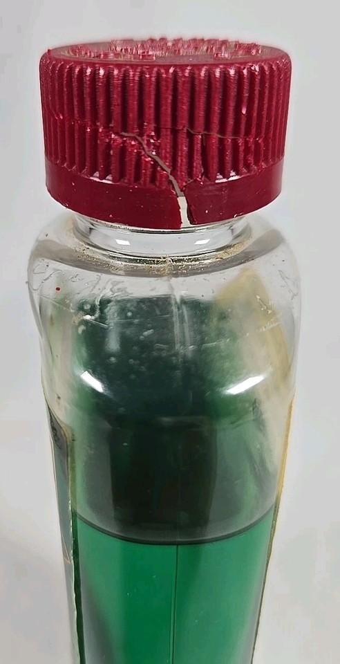 Bottle has approximately 90% left in it. The outer cap is cracked but the inner cap is still good and seals.