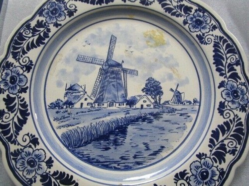 - Delft Blue Hand Painted Heineken Windmill Scene 9.5" Wall Plate [bp50]