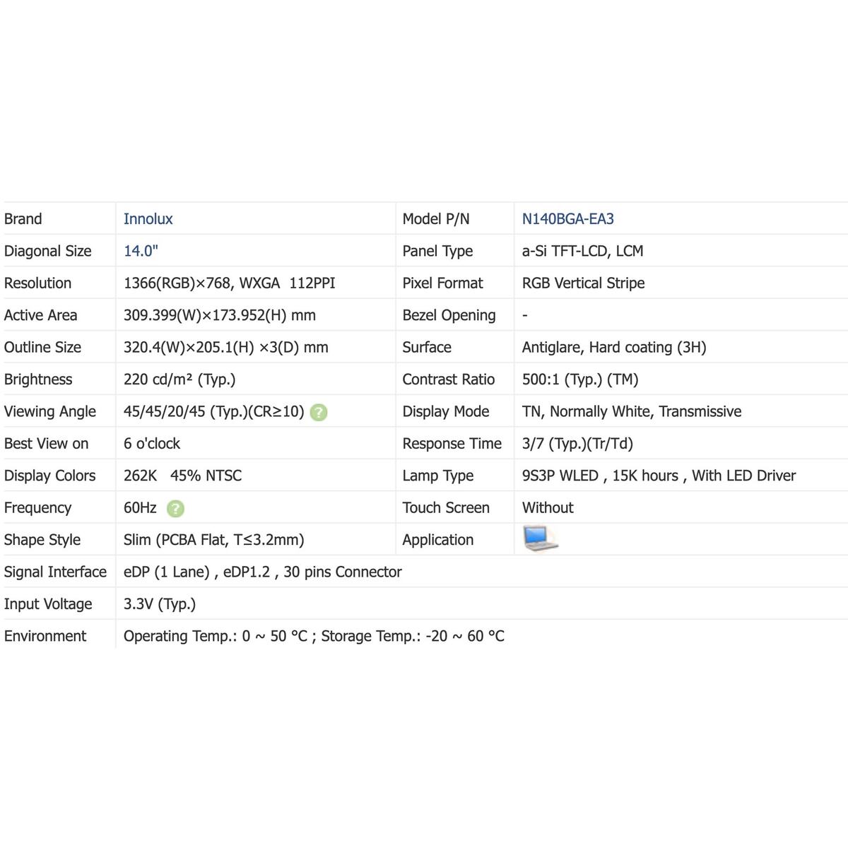 Innolux Branded Replacement for Dell Latitude E7440 E7450 E7470 14" HD LCD SCREEN PANEL Matte 08HH2. Brand new with original plastic on screen!