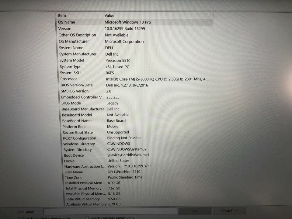 - Dell Precision 5510 Windows 10 8GB RAM i5-6300HQ CPU @ 2.3GHz 500GB HDD Office