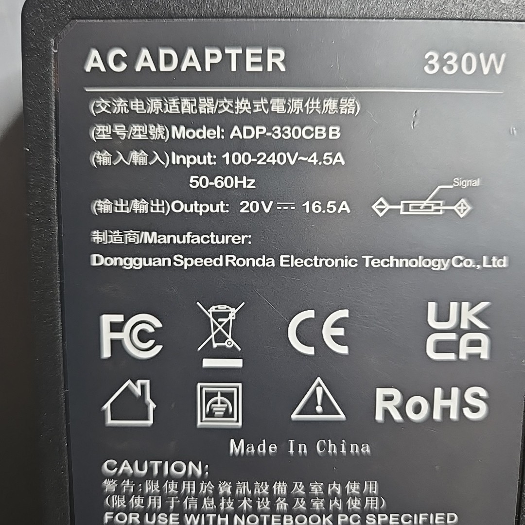 - Delta Electronics AC/DC Adapter ADP-330CB B 19.5V 16.9A 329.6W Power Supply