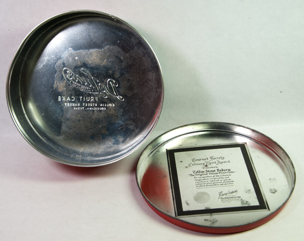 - Deluxe Fruit Cake 8" Tin Collin Street Bakery Corsicana Texas Christmas Vintage