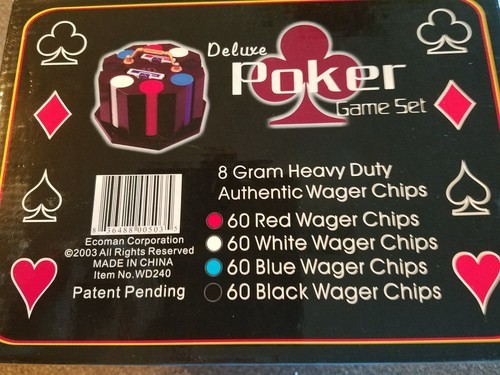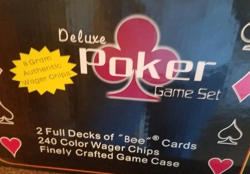 - Deluxe Poker Set ~ 2 Card Decks ~ 240 - 8 Gram Poker Chips ~ Red White Blue