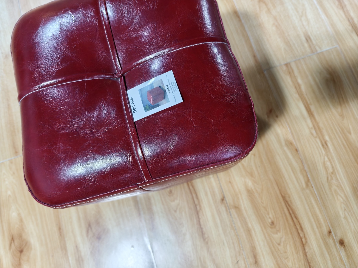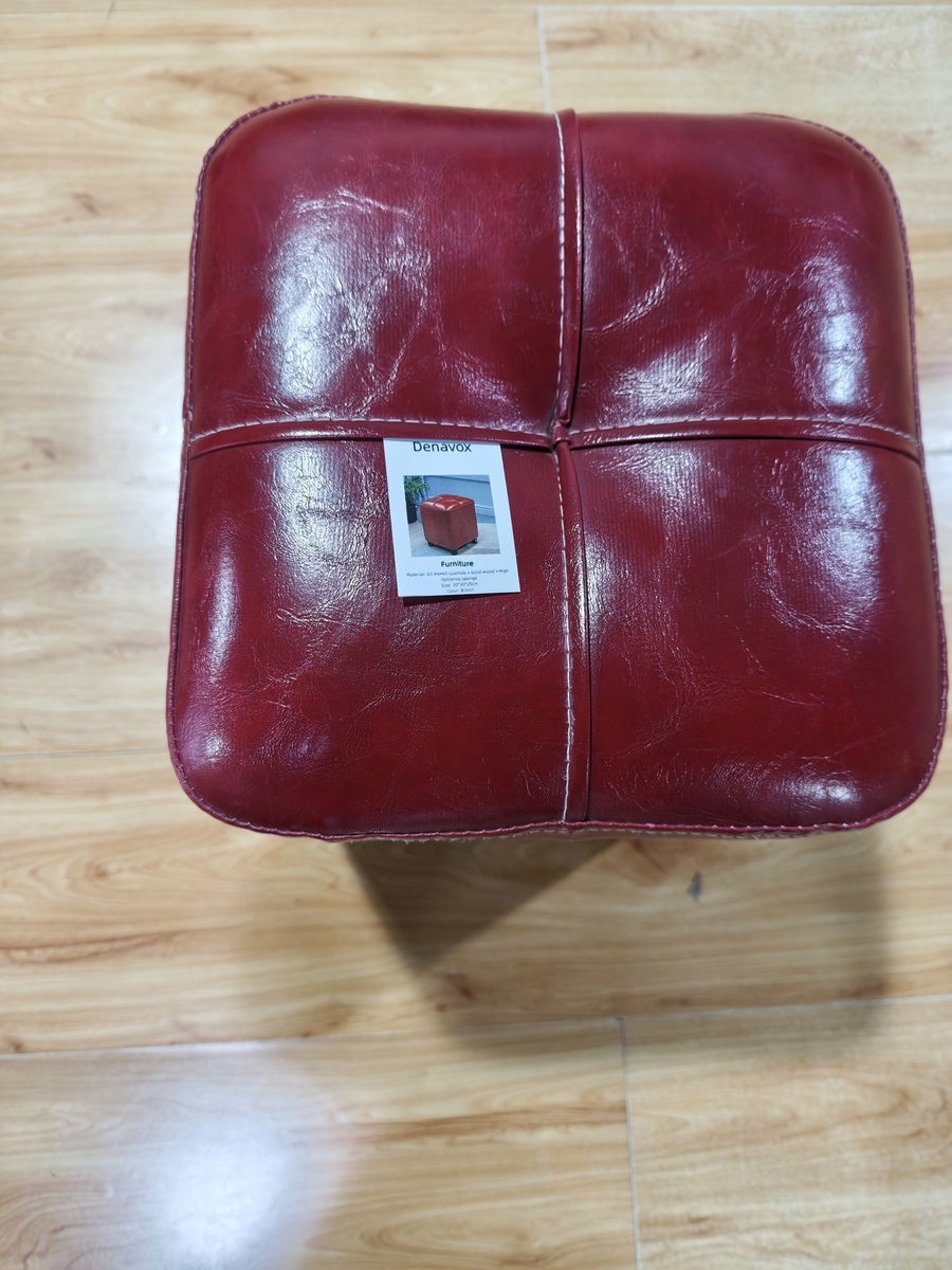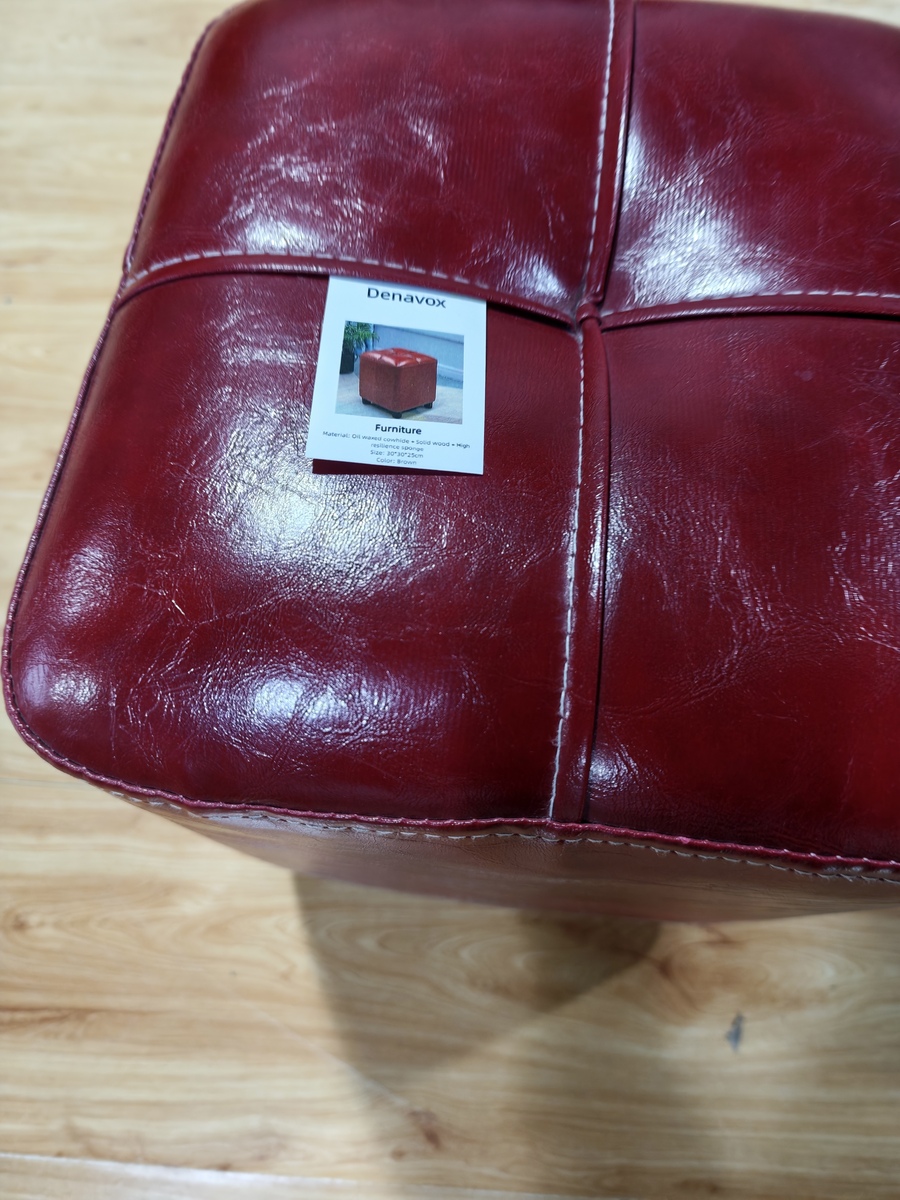 - Denavox Wine Red Leather Ottoman, Solid Wood Base, Soft & Durable Seat