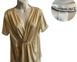 - Denim 24/7 Women’s M Gold Metallic Ruched V-Neck Short Sleeve Blouse