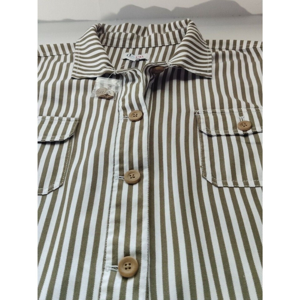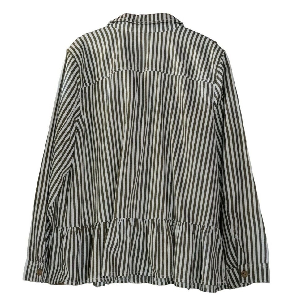 DENIM CO Women's Peplum Jacket Stripe Point Collar Button Front Olive XL $56