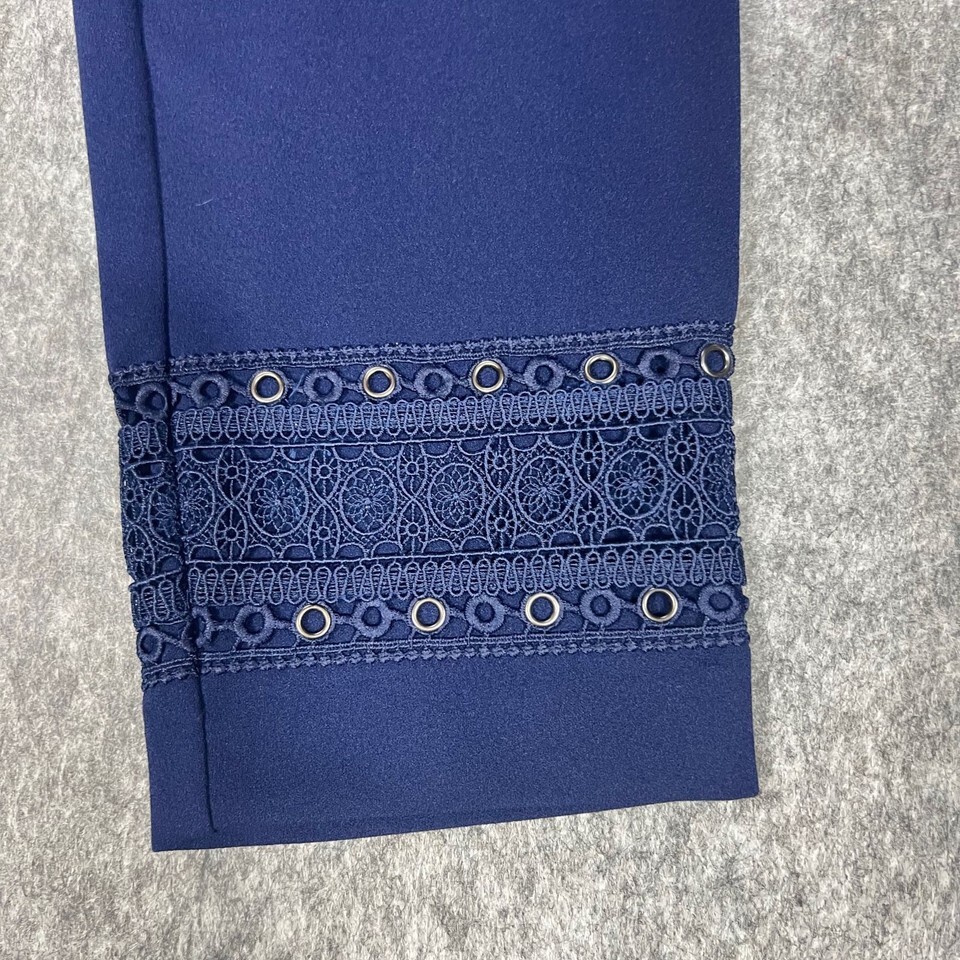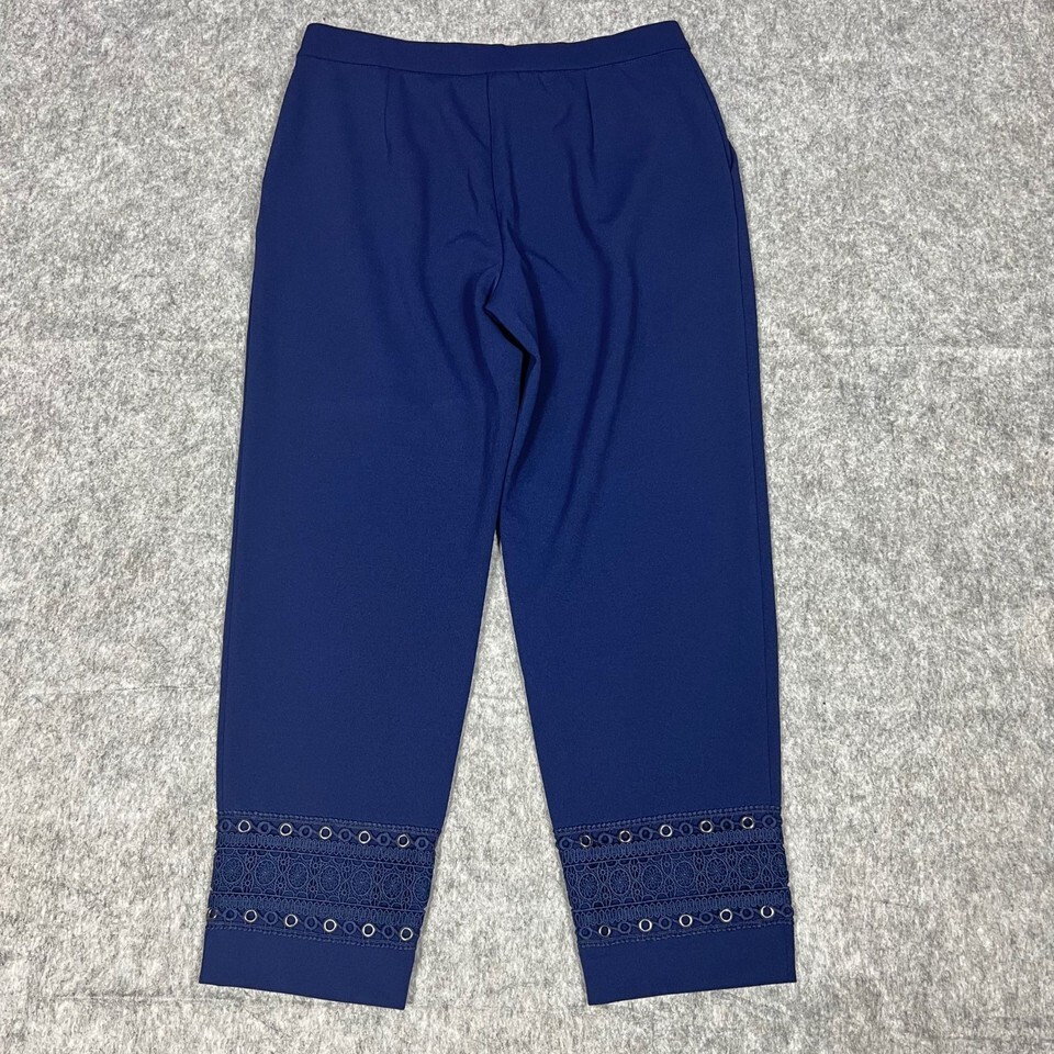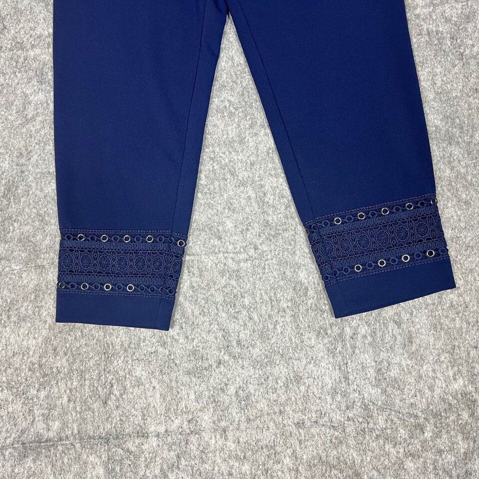 - Dennis Basso Womens Pants Navy Blue Size Small SP Slim Ankle Trousers Lace Hem