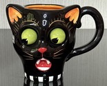 Department 56 Googly Wiggle Eyeball Black Cat Mug Ceramic Dracula Fang Halloween