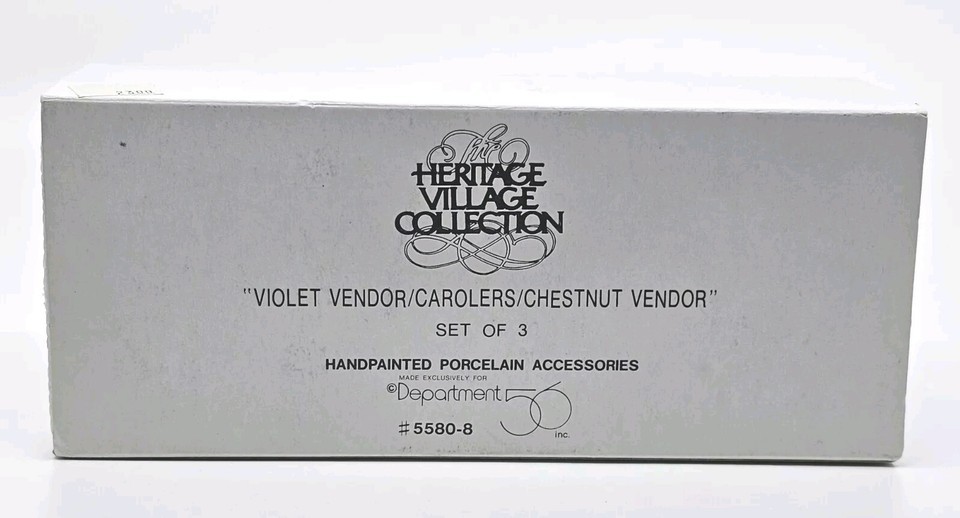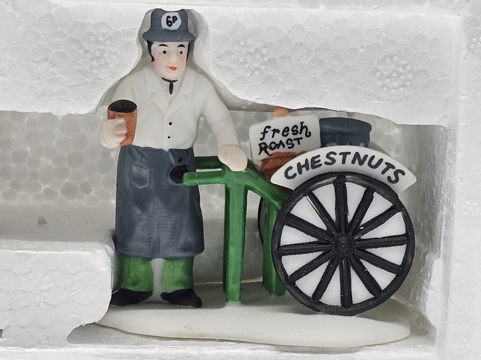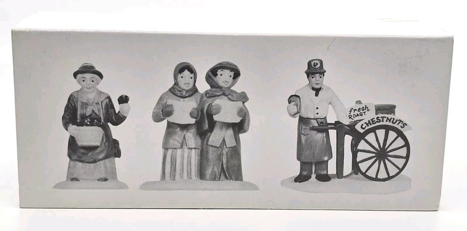 - Dept 56 Porcelain Village Accessory 1989 Violet Vender, Carolers & Chestnut Cart