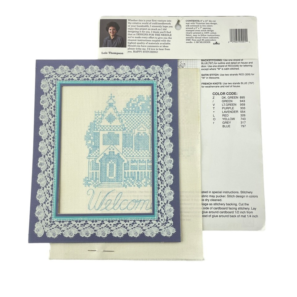 Condition: Repackaged, missing the floss, includes mat, stamped cotton fabric, instructions and needle. See photos.