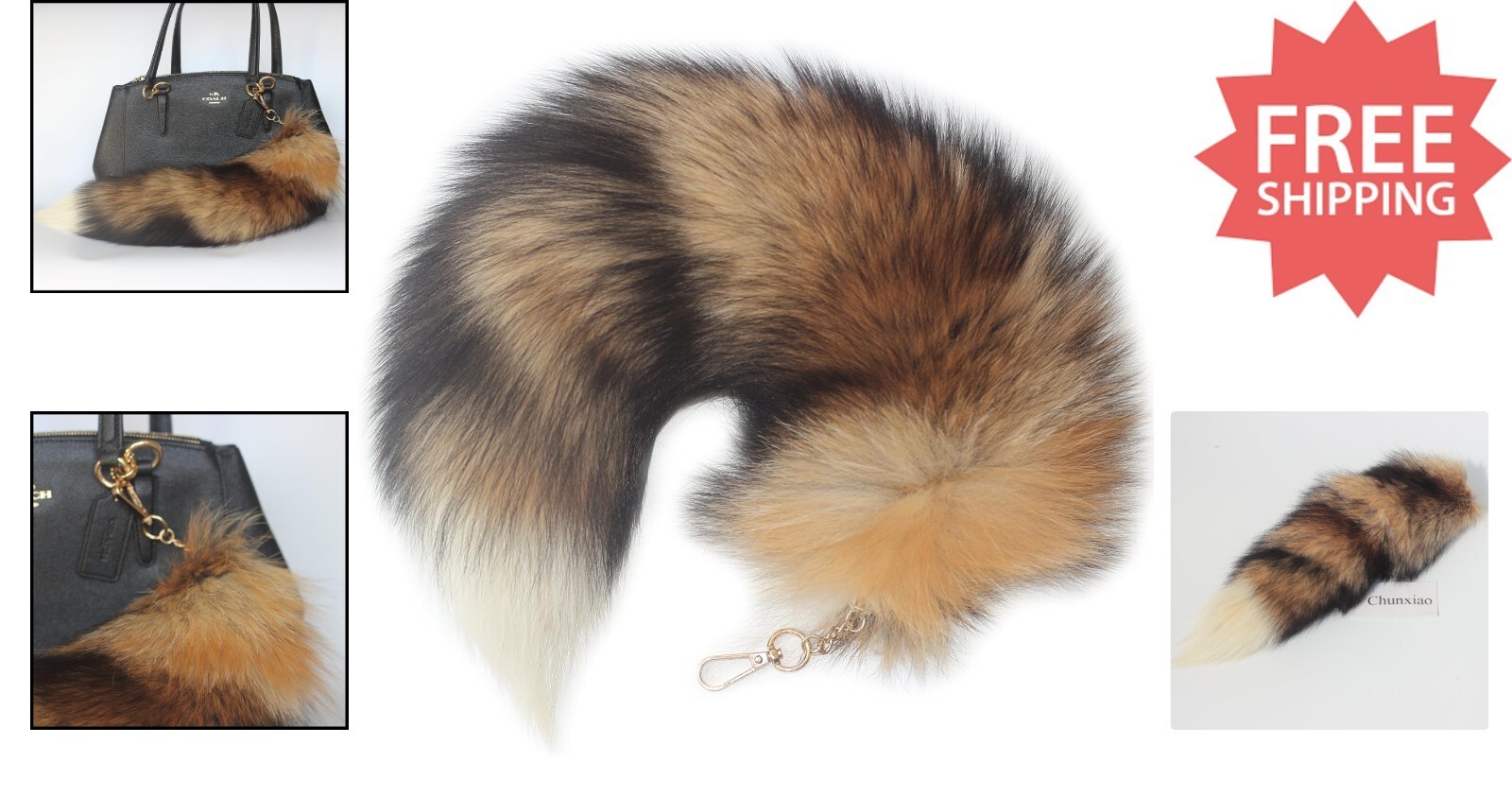 - Designer Fox Fur Tail Keychain - Multiple Color Options & Gold Clasp Accessory