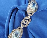 DESIGNER SIGNED 925 Sterling Silver BLUE TOPAZ Pave Marcasite Bracelet Chain 7.5