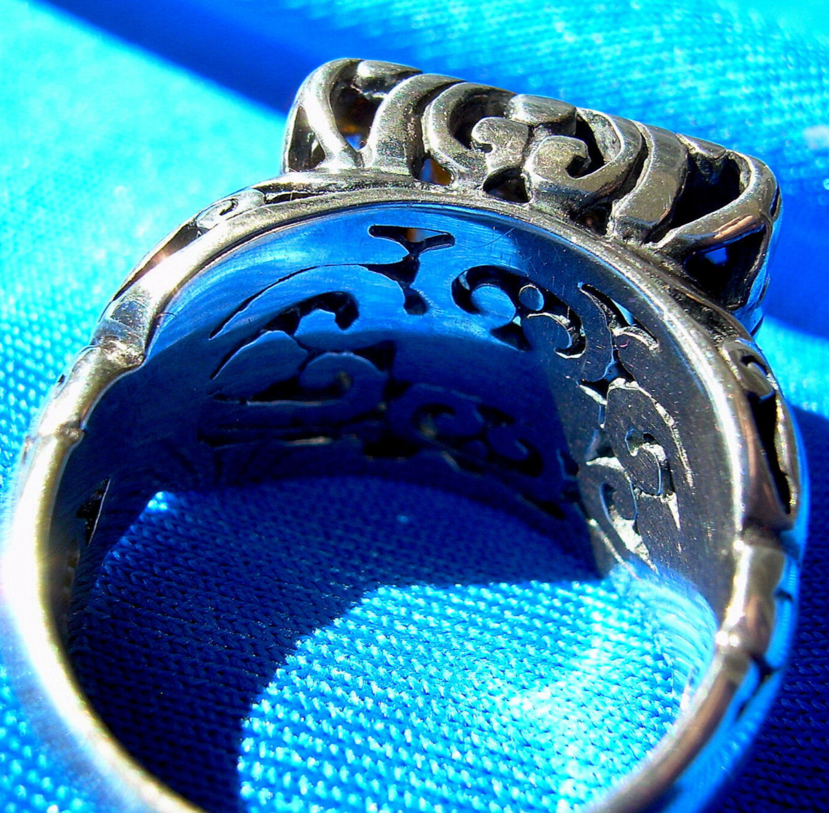 EXCITING VINTAGE DESIGNER SILVER CITRINE RING.