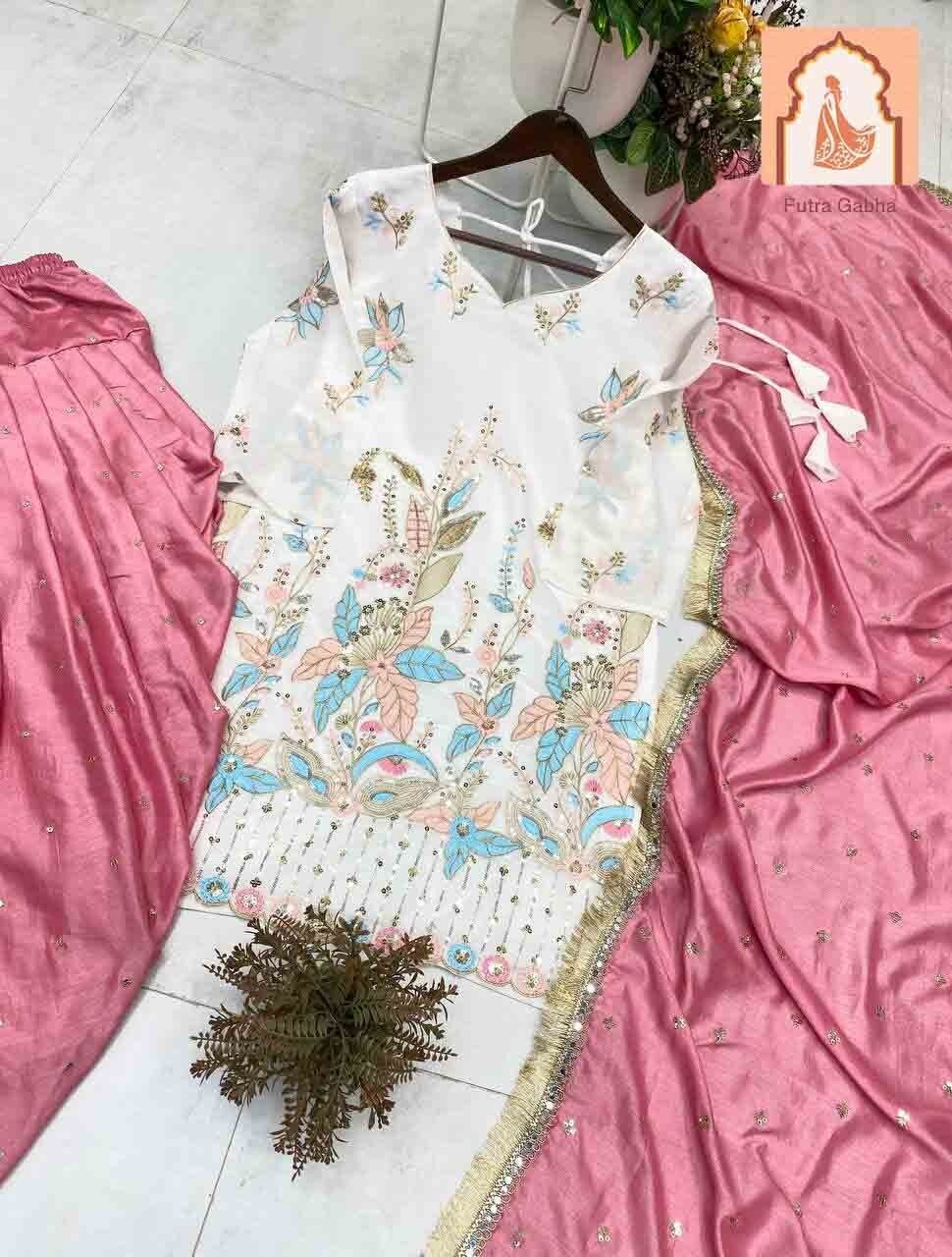 - Designer white party Wear Embroidered Top with Salwar Pair