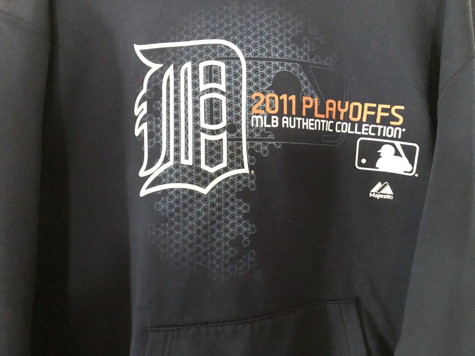 Detroit Tigers Sweatshirt Hoodie L Pre-Owned Navy Dark Blue 2011 Playoffs. I had some issues with the lighting but the first picture is the most true to the color. Sweatshirt is in good, clean pre-owned condition. Combined shipping is added in cart when you purchase multiple items at my shop.