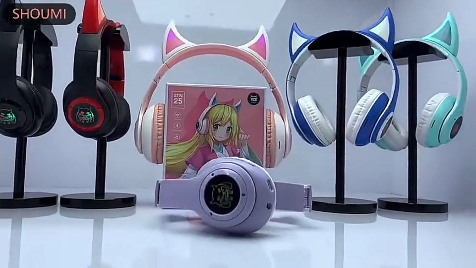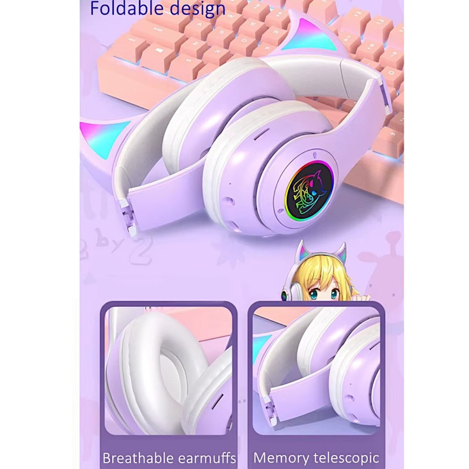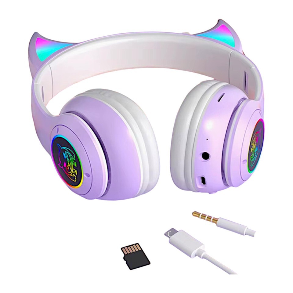- Devil Horn Ears Wireless Bluetooth Headphones Foldable RGB Gaming Headset Box