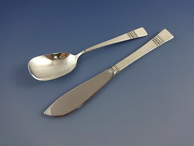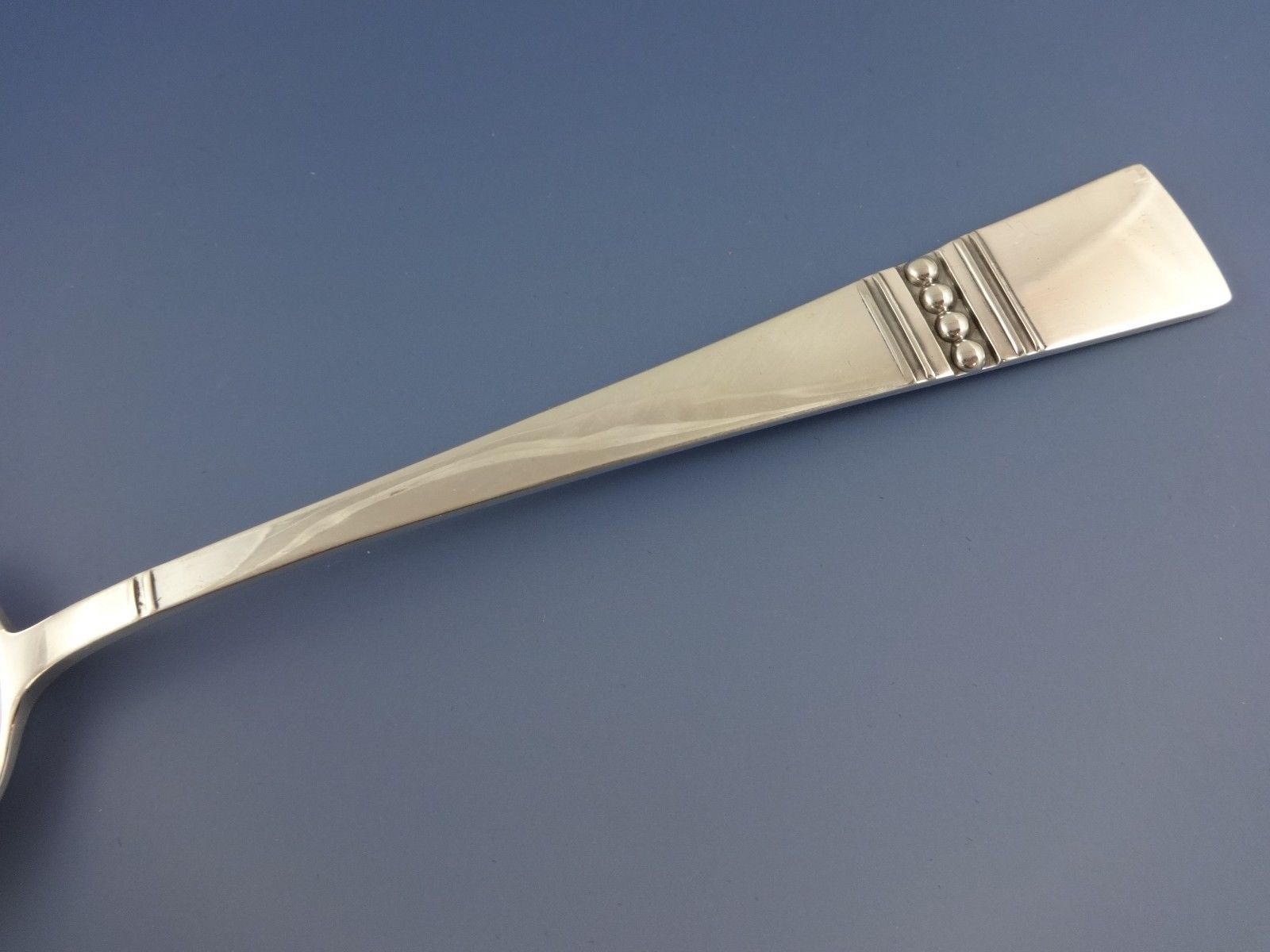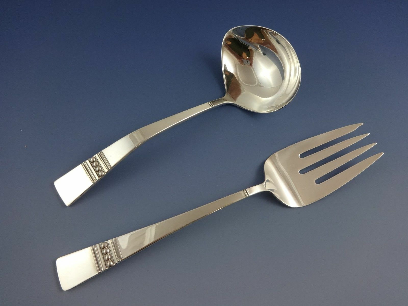 In the year 1967, famed Reed Barton designer John Prip's "Diadem" pattern was introduced. This Modernism pattern was accented with a band of the most traditional silver ornamentation, beading, but used in a new way. This set has a great look!