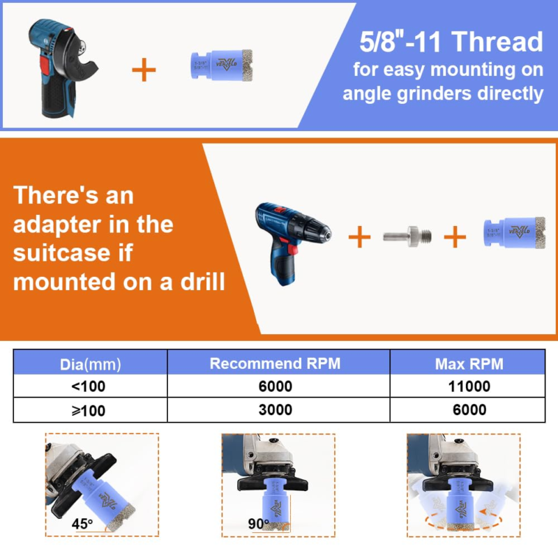?Easy to Install and Carry?: 5/8''-11 thread suitable for angle grinder; Hex shank adapter fits on hand drill, bench drill, etc.; Multifunctional items packed neatly in a portable suitcase