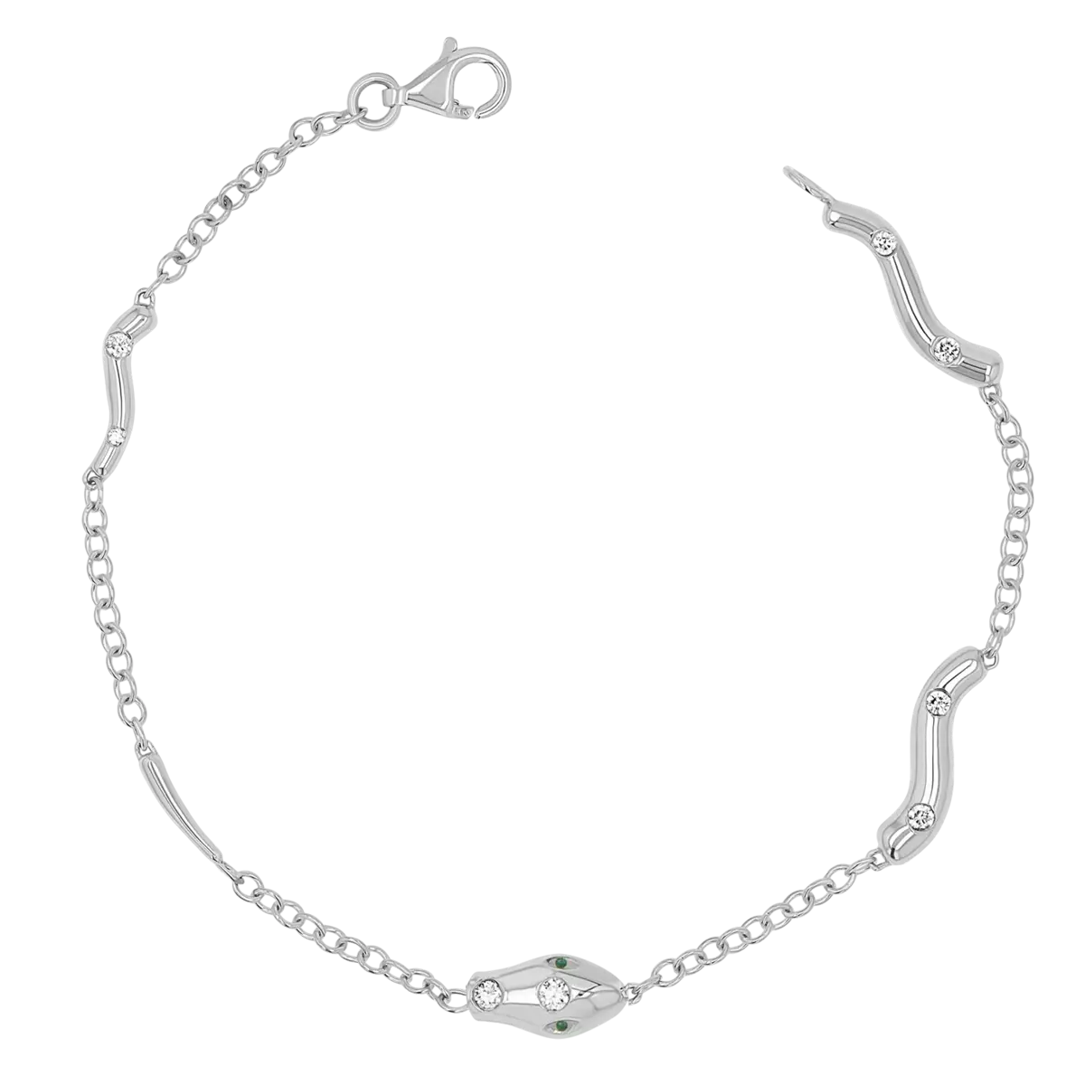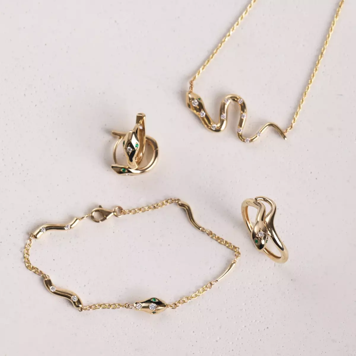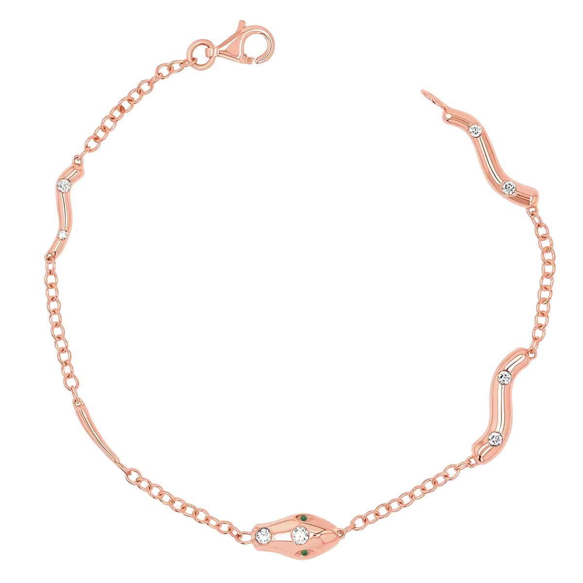 Introducing our Diamond Serpentine Bracelet, an elegant blend of fluid design and sparkling diamond and emerald stone accents. The 14K Gold curve links are meticulously crafted to mimic the graceful movement of a serpent, symbolizing transformation and elegance. Each link is dosed with brilliant diamonds, adding a touch of sparkle that catches the light with every motion. Associated with wisdom and renewal, wearing your Diamond Serpentine bracelet can be a talisman for protection and a reminder of inner wisdom and strength everyday!