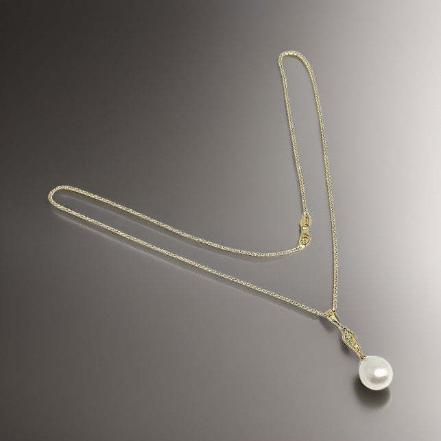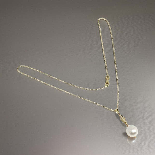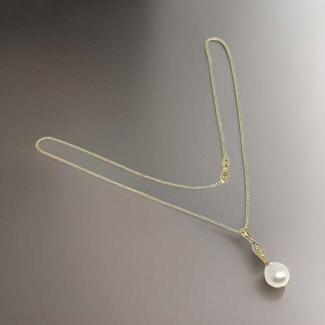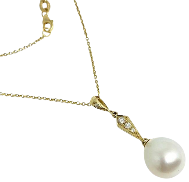 - Diamond South Sea Pearl Necklace 12.77 mm 14k Gold Italy Certified $1,290 816015