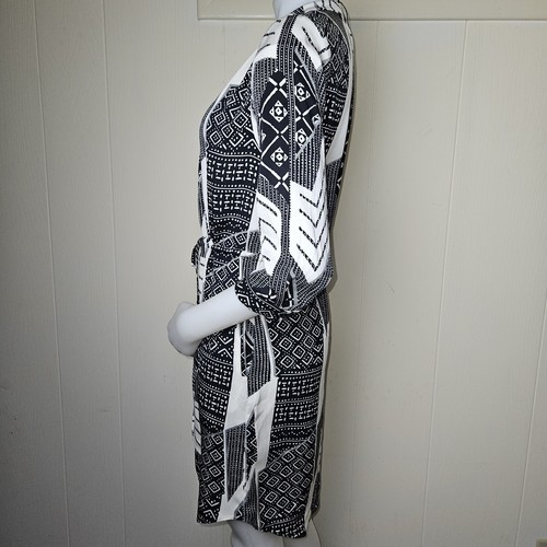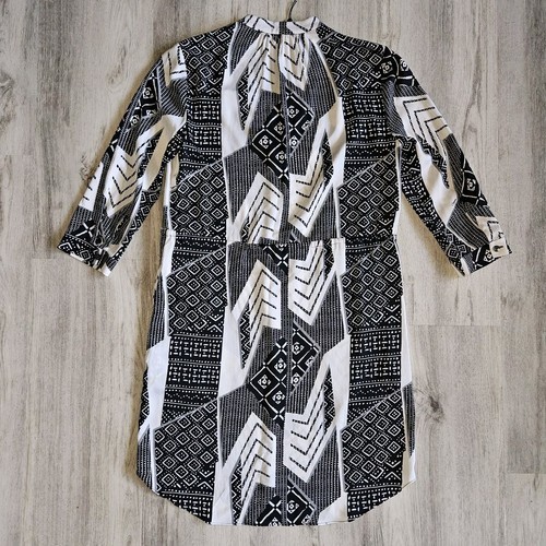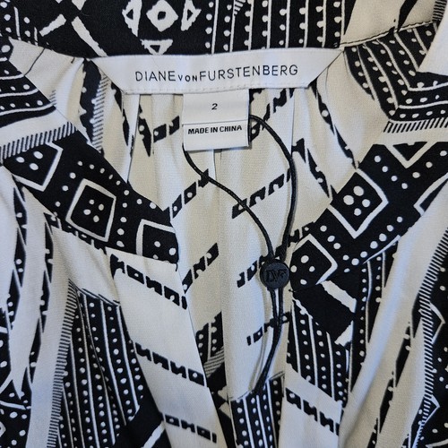 - Diane Von Furstenberg Freya Silk Dress Womens 2 Black Ethnic Print 3/4 Sleeve