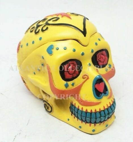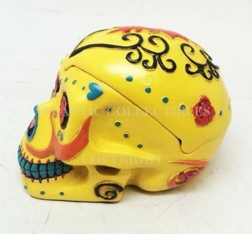 - DIAS DE LOS MUERTOS DAY OF THE DEAD YELLOW SKULL ASHTRAY SCULPTURE