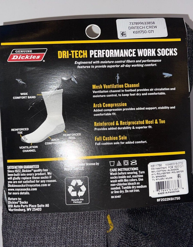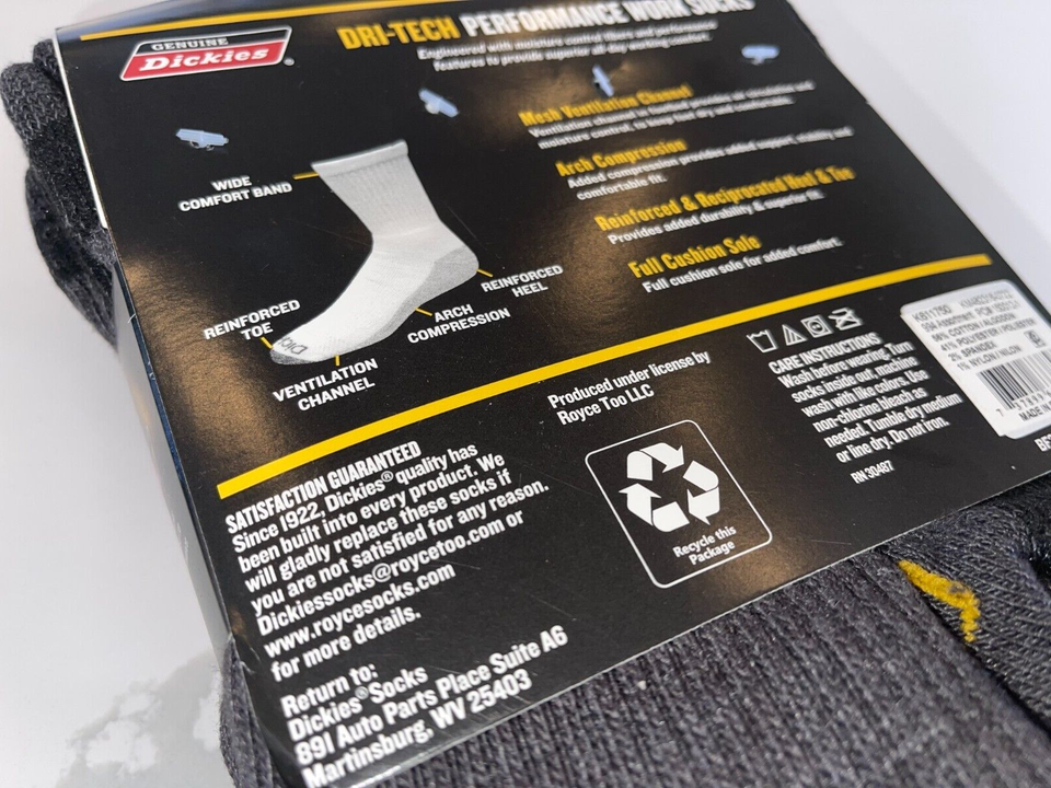 - DICKIES FLEX DRI-TECH CREW PERFORMANCE WORK SWEAT FIGHTING SOCKS 3 PR 6-12 GRAY