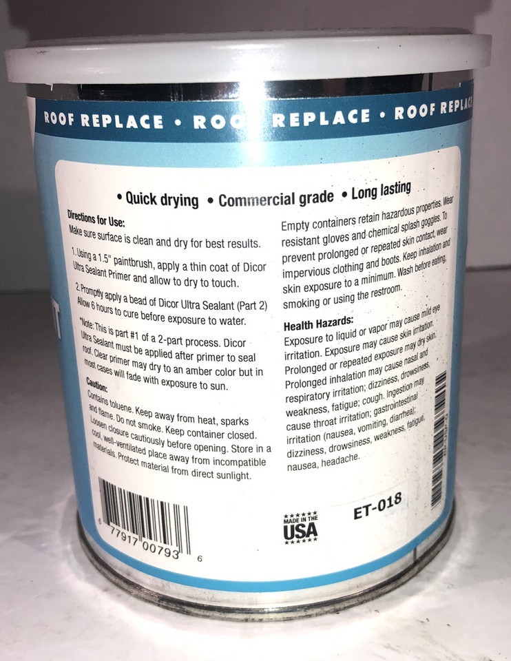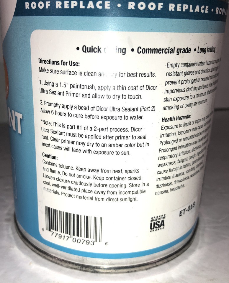 You Will Receive 1 ea Package Containing Dicor Products RP-USP-Q Ultra Sealant Primer-Use W Sealant #610SASLW-1-Clear-1 Quart NEW.