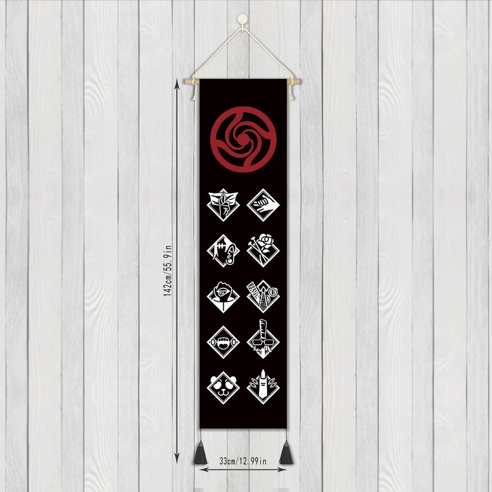 Designer Say: What a wonderful tapestry! Very creative design,This Anime Jujutsu Kaisen bottons symbol tapestry adopts HD printing technology, with clear lines, cute colors and elegant tassels, using it will make your room look more beauty. Product Features: Classical colors High-grade fashion Careful design and unique style Product Specifications: Material: Cotton linen Size: Approx 56 L 13 W (142cm * 33cm) Easy to Hang: Light weight, easy to apply to your indoor or outdoor decoration, multiple hook options for various materials of walls. Package Included: 2* Tassel pendant 2* Invisible nails 2* Self-adhesive hooks 1* Wooden pole 1* String 1* Printed canvas