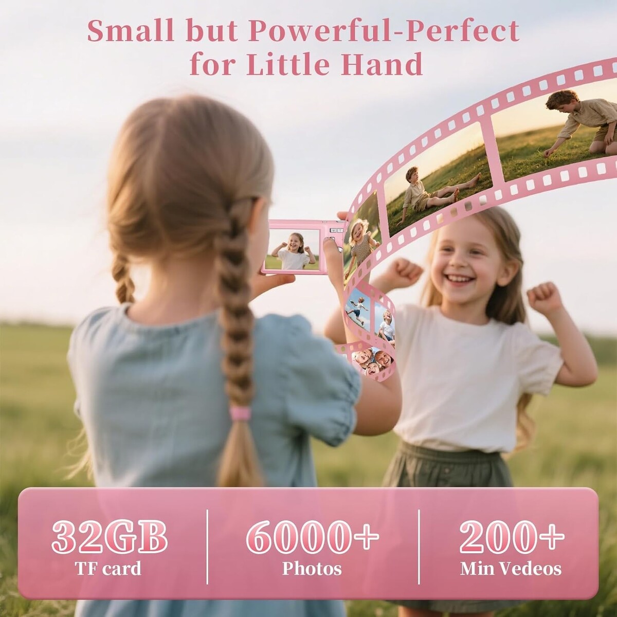 Easy to Use with 30 Fun Filters: Designed for little hands, this small digital camera has an ergonomic build, intuitive buttons, kid-friendly menus, and a large LCD screen?ideal for kids 5-13+. Store thousands of adventures on the included 32GB card, then one-click transfer to PC via USB cable. Best of all, 30 built-in filters (retro, black-and-white, warm tones, etc.) let kids unleash creativity. Perfect for parties, Halloween, Christmas, or any event?they?ll craft unique photos effortlessly.