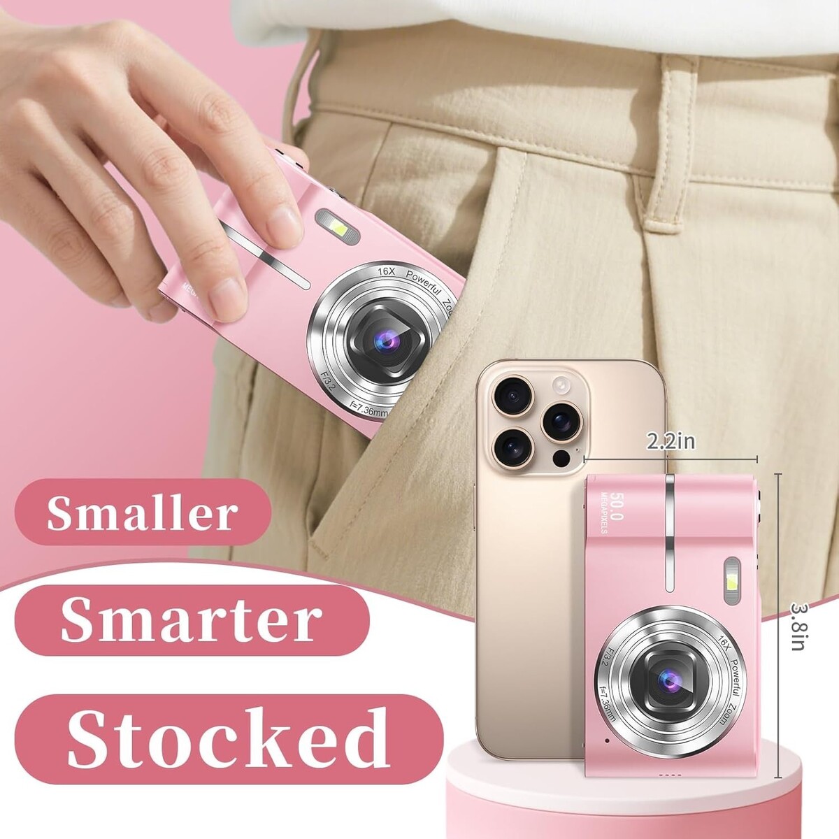 Capture Joy in Every Shot: The pink digital camera for kids delivers stunning UHD 4K videos and crisp 50MP photos with its advanced CMOS metering system. This point-and-shoot camera is easy to operate?just press the shutter and let the camera do the rest! With a 2.4-inch HD display, kids can instantly review their shots. Perfect for teen girl gifts trendy stuff and beginners, it's the ideal gift for birthdays, trips, or school events and everyday adventures, capturing every precious moment