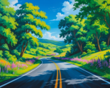 What you see is a road full of lush green plants and trees, a scene that is surely a wonderful sight to see in roadtrips. “Breathtaking Interval” shows a lively imagery of a road surrounded by the richness of nature. Although the lighting used is warm, the overall appearance of the piece features a dominant set of cold colors ranging from the blues and greens. The presence of the warm lighting thanks to the sunlight, it makes the piece balanced by adding a little bit of contrast. The feeling it tries to evoke is positive, a great piece to remind and inspire you of the joy in going to an adventure where nature accompanies you in every mile.