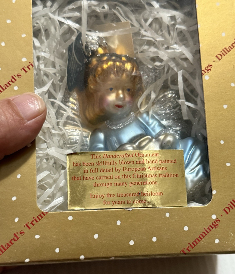 - Dillard's Trimmings 5" Blown Glass Angel Ornament Germany