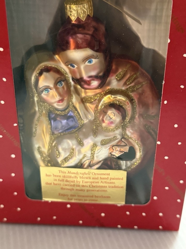 - Dillard's Trimmings 5" Blown Glass Ornament Germany-Jesus Mary and Joseph