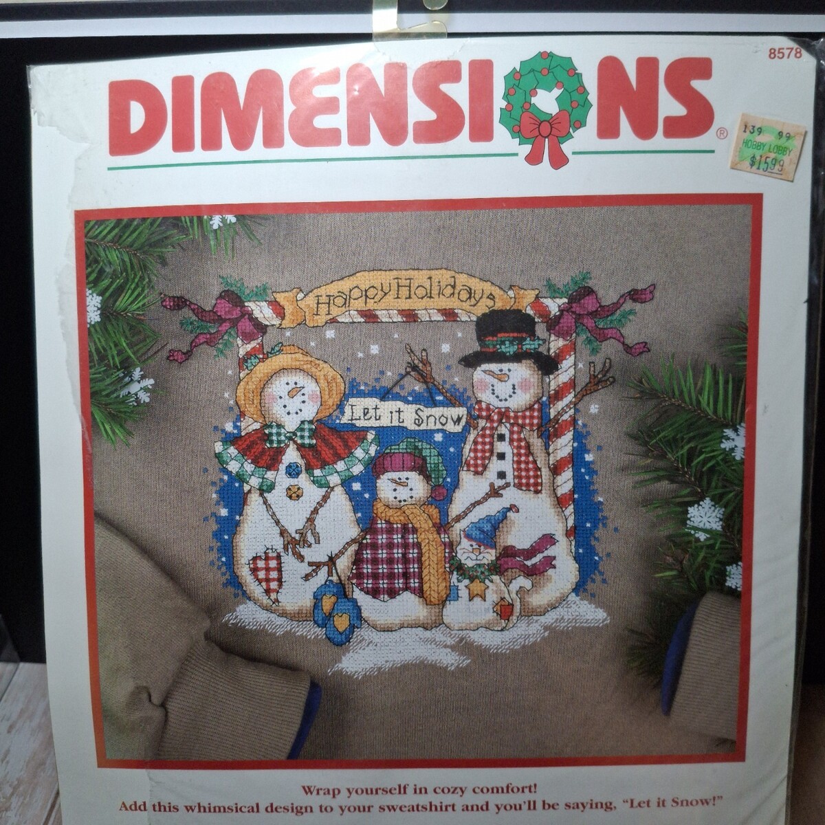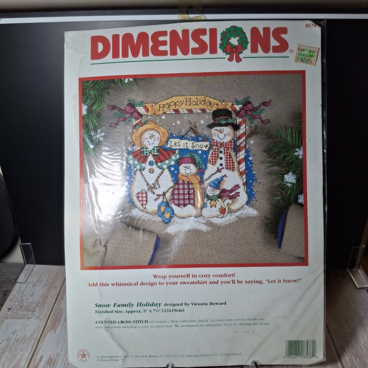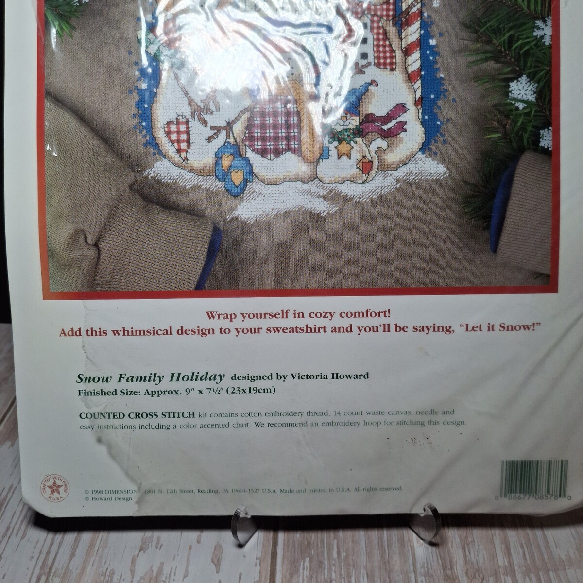 - Dimensions Christmas Cross Stitch Kit 8578 SNOW FAMILY HOLIDAY 1998 Open Package